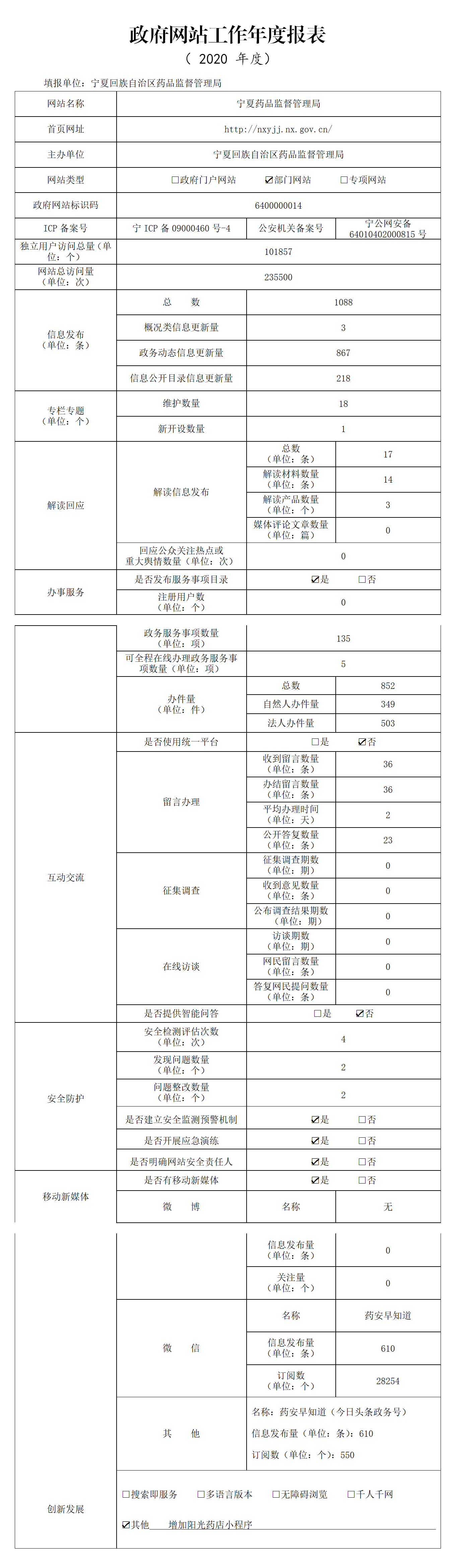 2020年度宁夏美女av影片 政府网站年度工作报表